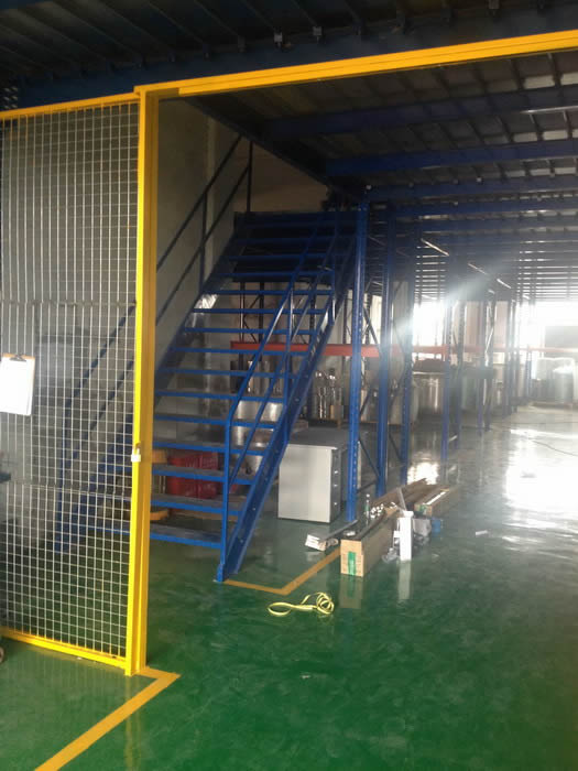 一樓可能通過堆高機(jī)作業(yè),一般擺放可以上貨架的物品及存取頻率比較高的貨物,這樣在閣樓平臺(tái)中,將主要作業(yè)集中在一樓,而二樓的貨物,可以通過我們?cè)O(shè)置的樓梯通過人工存取,當(dāng)然,有時(shí)我們也會(huì)根據(jù)客戶要求,設(shè)計(jì)上下貨口或升降平臺(tái)存取。